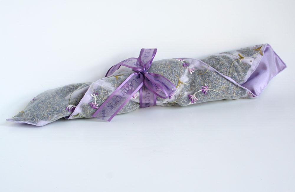 Sheer on one side and silky on the other, this beautifully embroidered drawer liner is filled with fragrant lavender and has a ribbon if you'd prefer to hang it in a closet. Also a treat when tucked flat inside a pillowcase. Made in USA.
